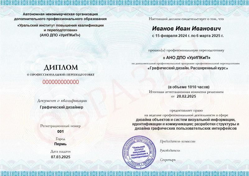 - Образец диплома о профессиональной переподготовке.