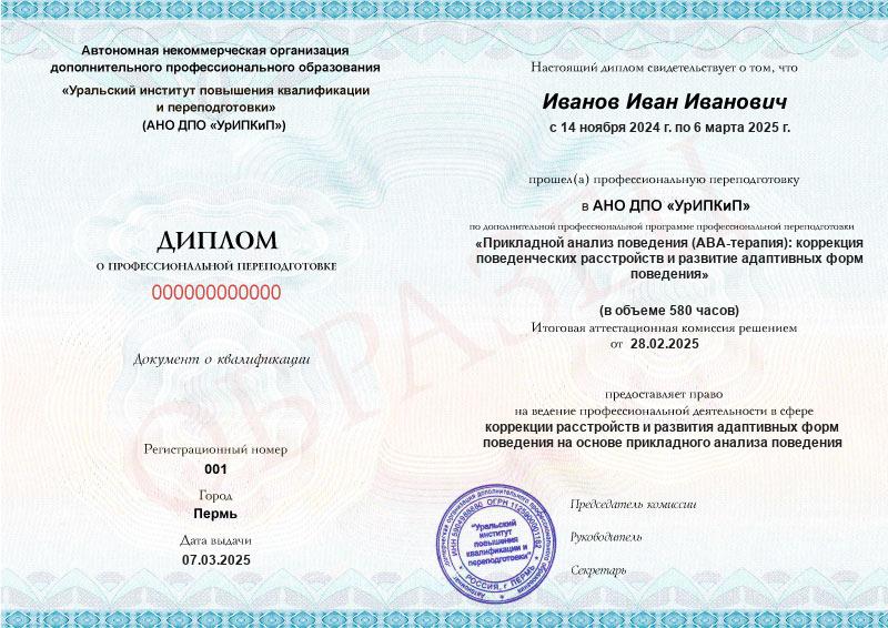 Сможете проводить коррекцию расстройств и развития адаптивных форм поведения на основе прикладного анализа поведения.