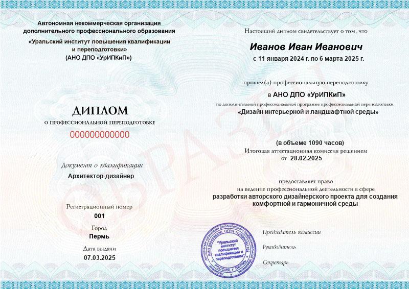 Да, дипломы и удостоверения оформляются в соответствии с действующим законодательством РФ. Документы печатаются на специальных бланках, заверяются печатью АНО ДПО «УрИПКиП».