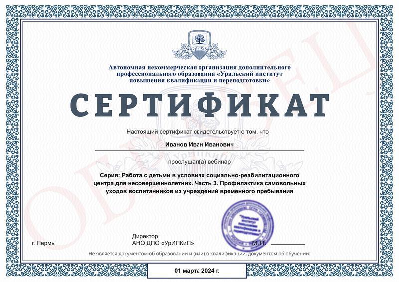 Заполненные образцы выдаваемых документов есть в описании учебных курсов и на странице «Лицензия. Документы», а также на главной странице официального сайта АНО ДПО «УрИПКиП».