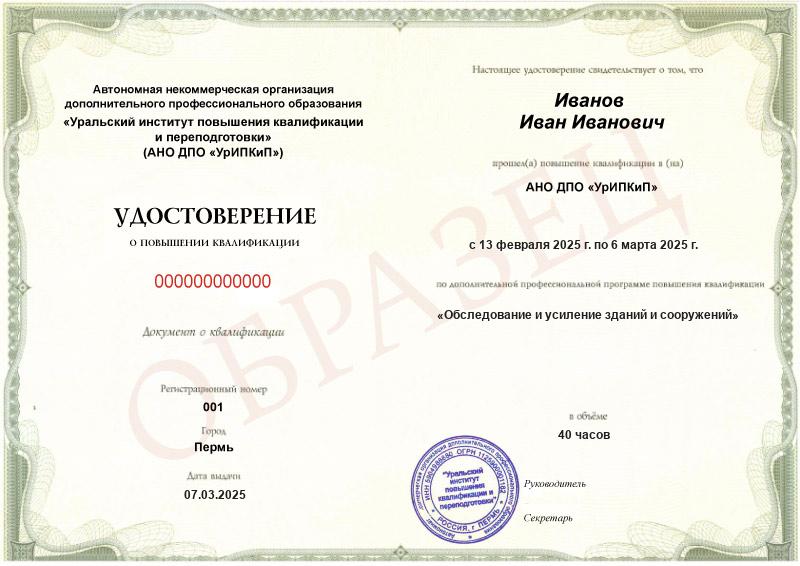 Да, дипломы и удостоверения оформляются в соответствии с действующим законодательством РФ. Документы печатаются на специальных бланках, заверяются печатью АНО ДПО «УрИПКиП».