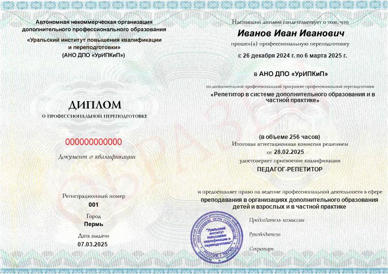 • Квалификация: Педагог-репетитор