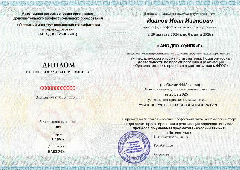 Да, дипломы и удостоверения оформляются в соответствии с действующим законодательством РФ. Документы печатаются на специальных бланках, заверяются печатью АНО ДПО «УрИПКиП».
